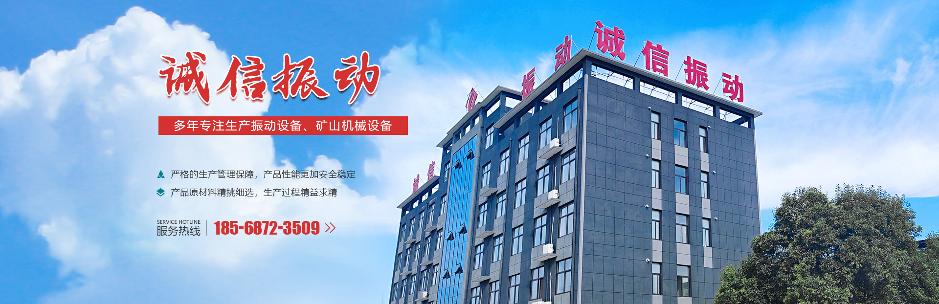 新鄉市誠信振動設備有限公司是國內生產振動設備及礦山機械設備的生產廠家,公司集研發、 設計、生產、 銷售為一體化,注冊資金5800萬元,職工500余人,技術人員80余人。公司位于河南省新鄉市小冀經濟開發區,占地8萬平方米,建筑面積6.8萬平方米,并通過了ISO質量體系認證。公司的主要產品有系列振動電機、振動篩、多元環保篩、彈性環保篩、振動給料機、振動輸送機、破碎機、皮帶機、斗式提升機、鏈斗輸...... <了解更多>